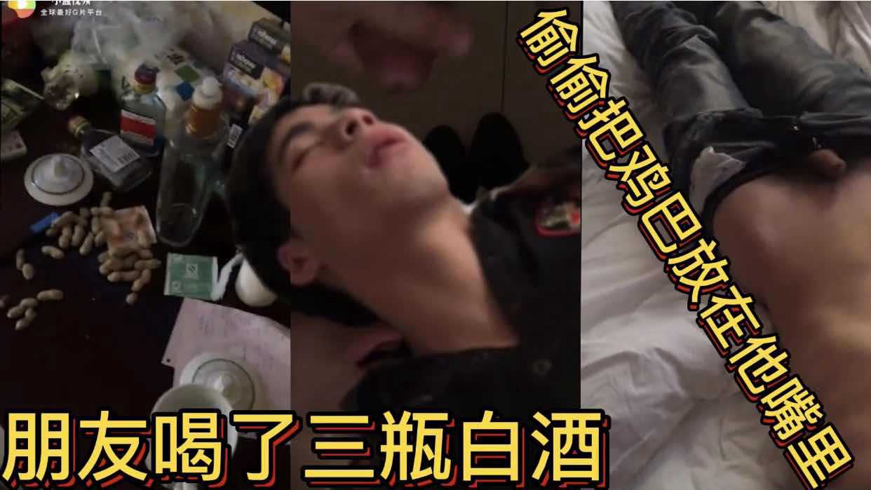 朋友喝了三瓶白酒 偷偷把鸡巴放到他嘴里 让他含着我的精液睡觉