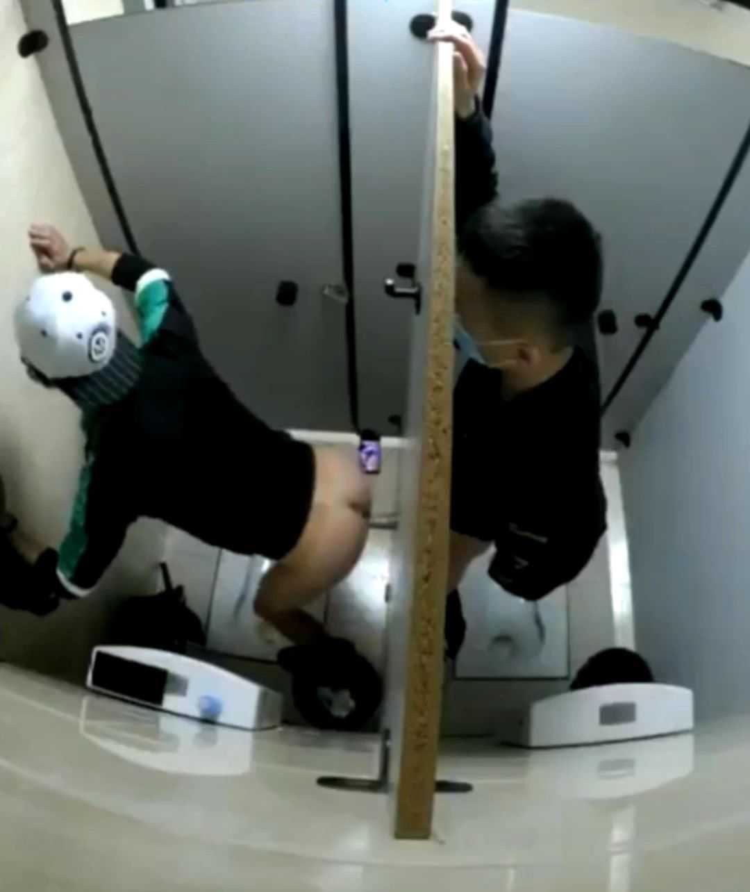 某同志公园里的公厕,两大叔在周围多人甚至还有个在拉粑粑的情况下,饥渴的吃起了大鸡