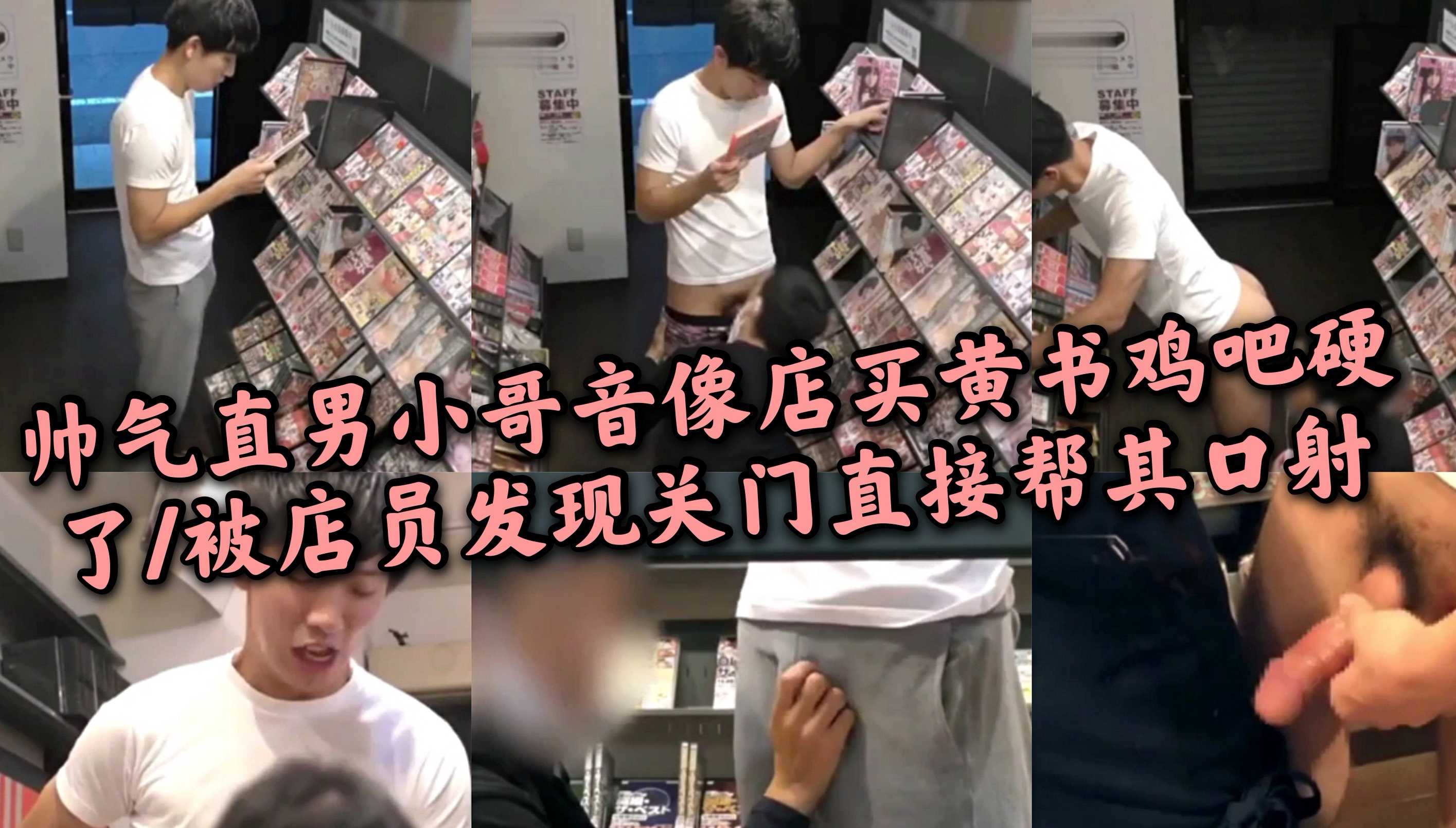 帅气直男小哥音像店买黄书鸡吧看硬了/被店员发现关门帮其口射