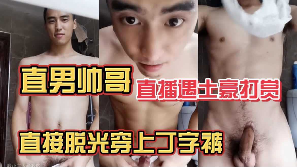 直男帅哥直播被土豪刷礼物,立马脱光换上丁字裤,鸡巴硬着秀给土豪看,骚得一批