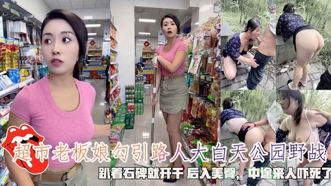 超市老板娘勾引路人大白天公园野战趴着石碑就开干中途来人吓死了