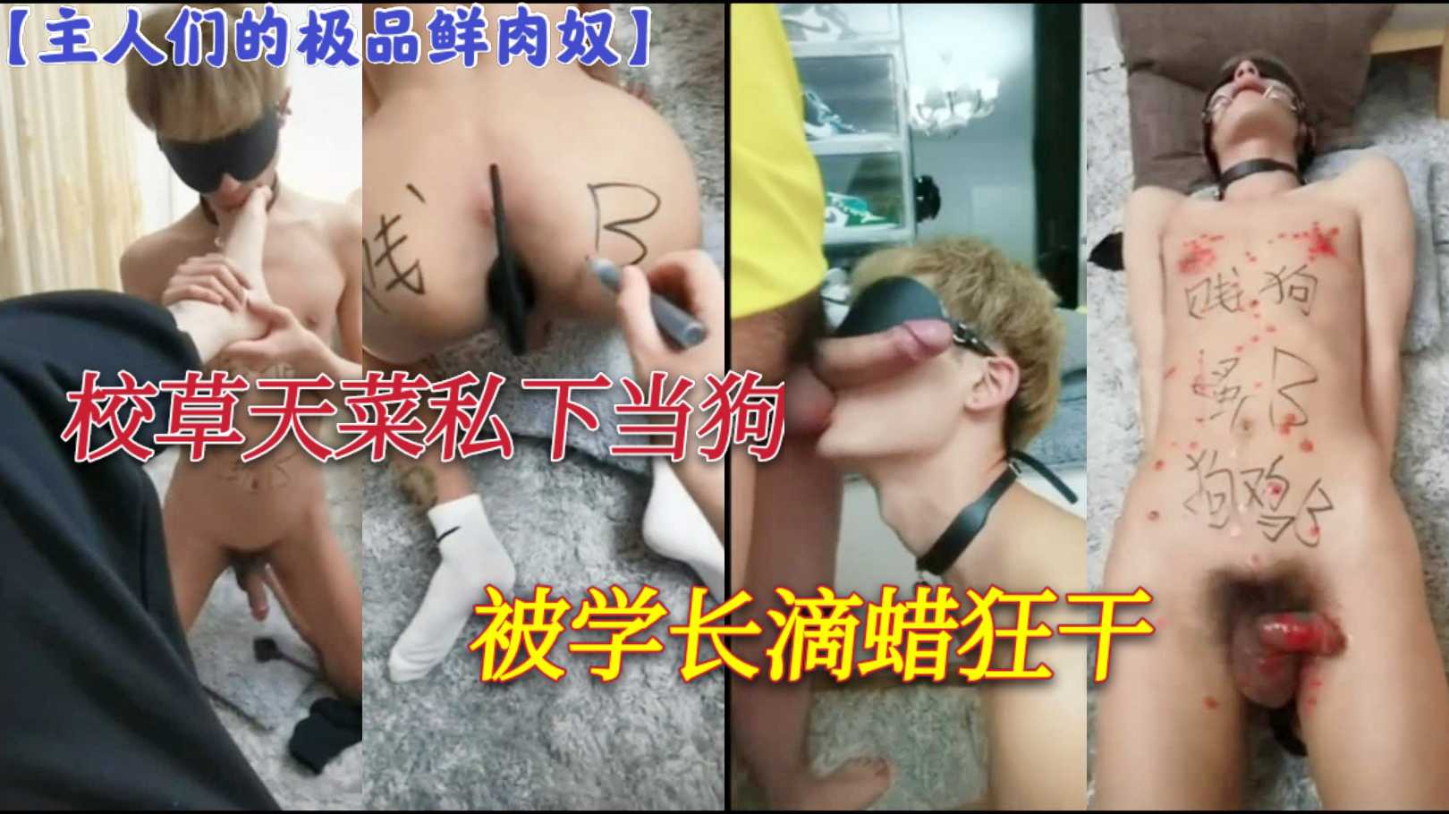 主人们的极品鲜肉奴,校草天菜私下当狗被学长滴蜡狂干,蜡滴鸡巴上还被操到射,调教得太狠了