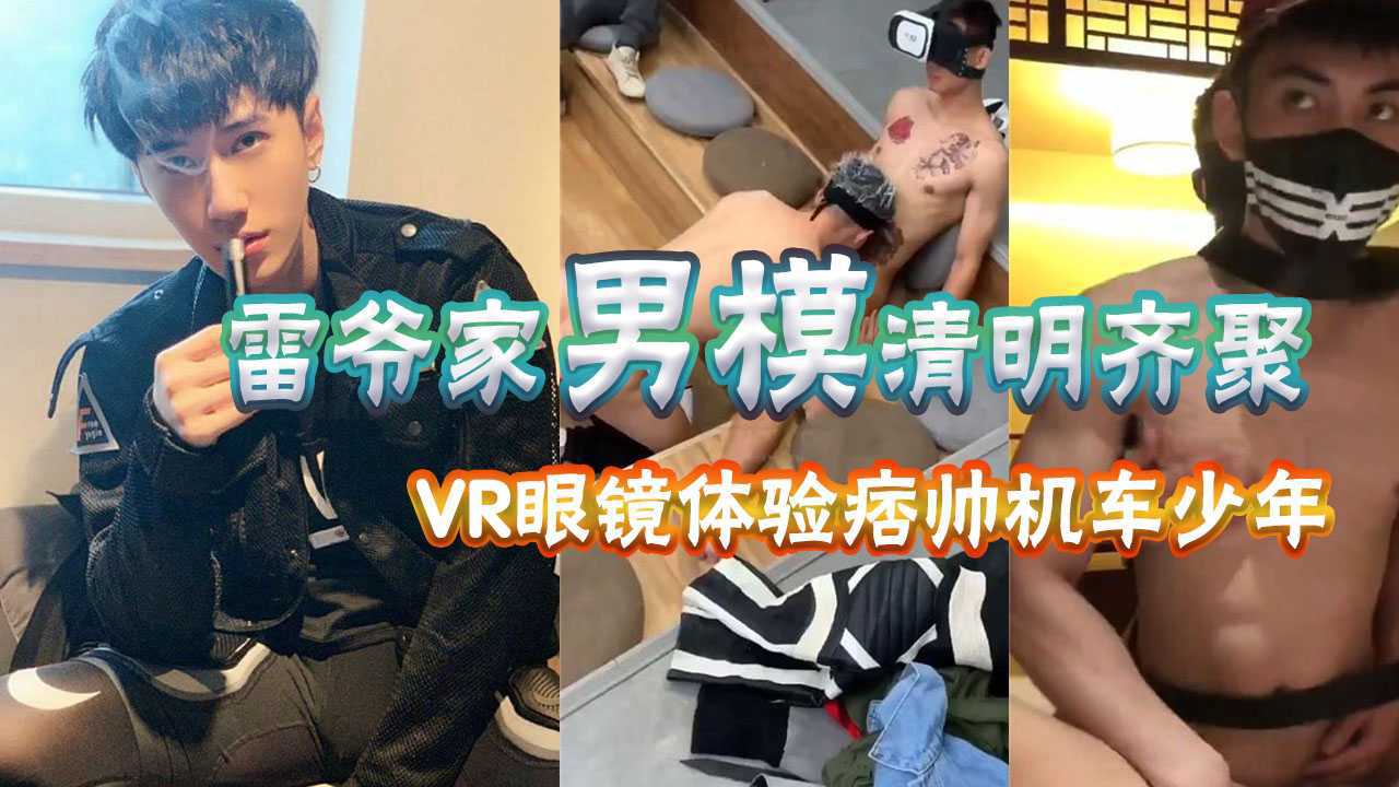 雷爷家男模清明假期齐聚,戴着vr眼镜体验痞帅机车男孩被玩的快感