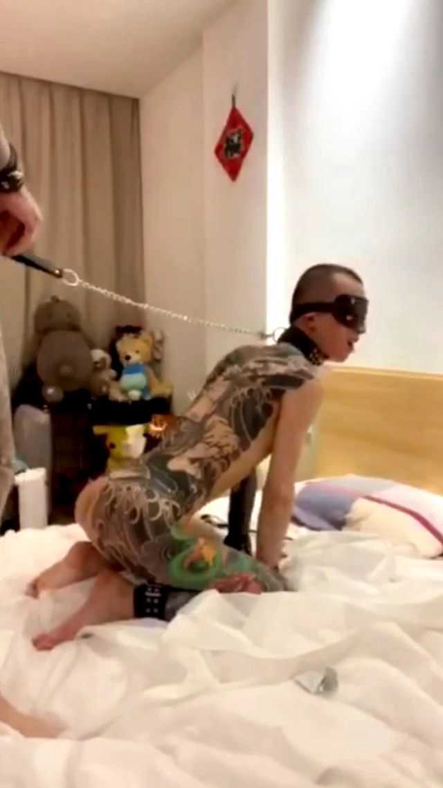 卖力发骚的纹身鲜肉给男友视觉刺激,被男友怼到最深处