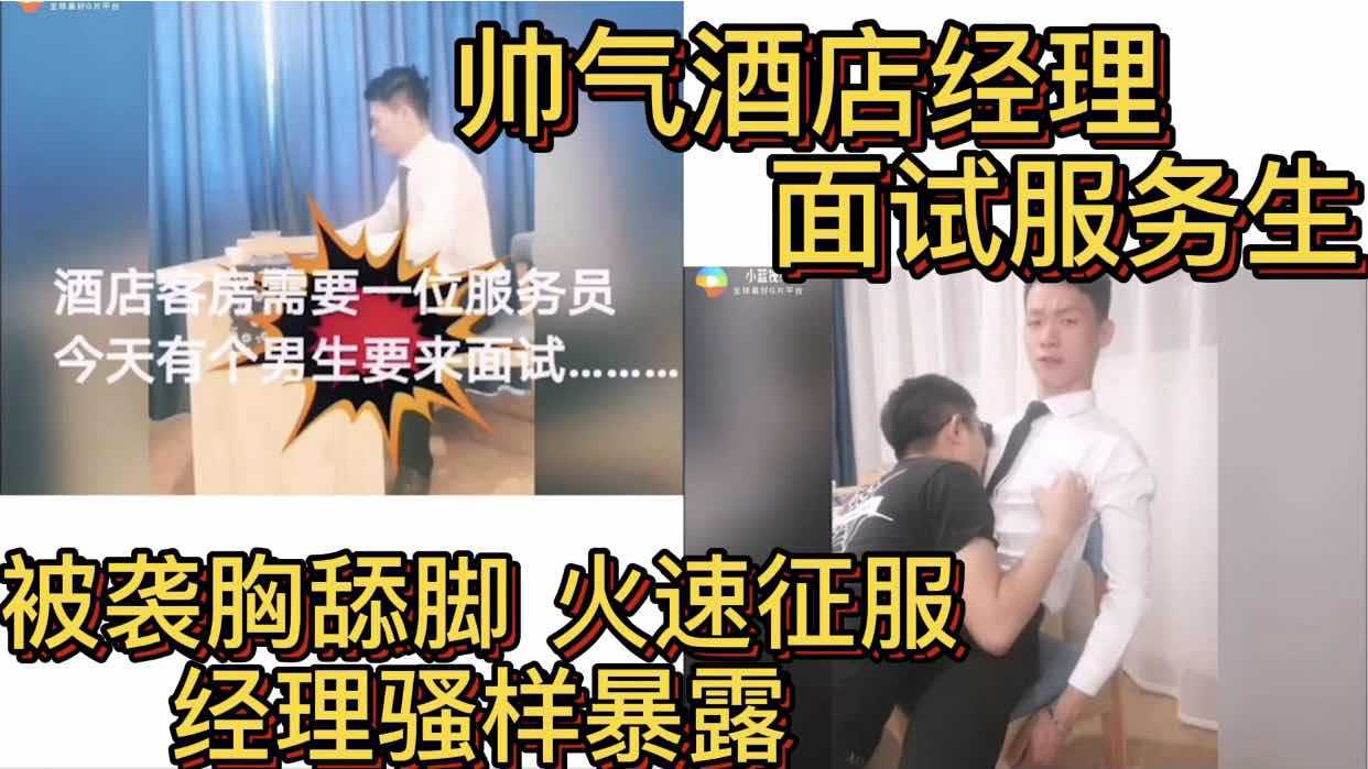 帅气酒店经理面试服务生 被袭胸舔脚 经理骚样暴露