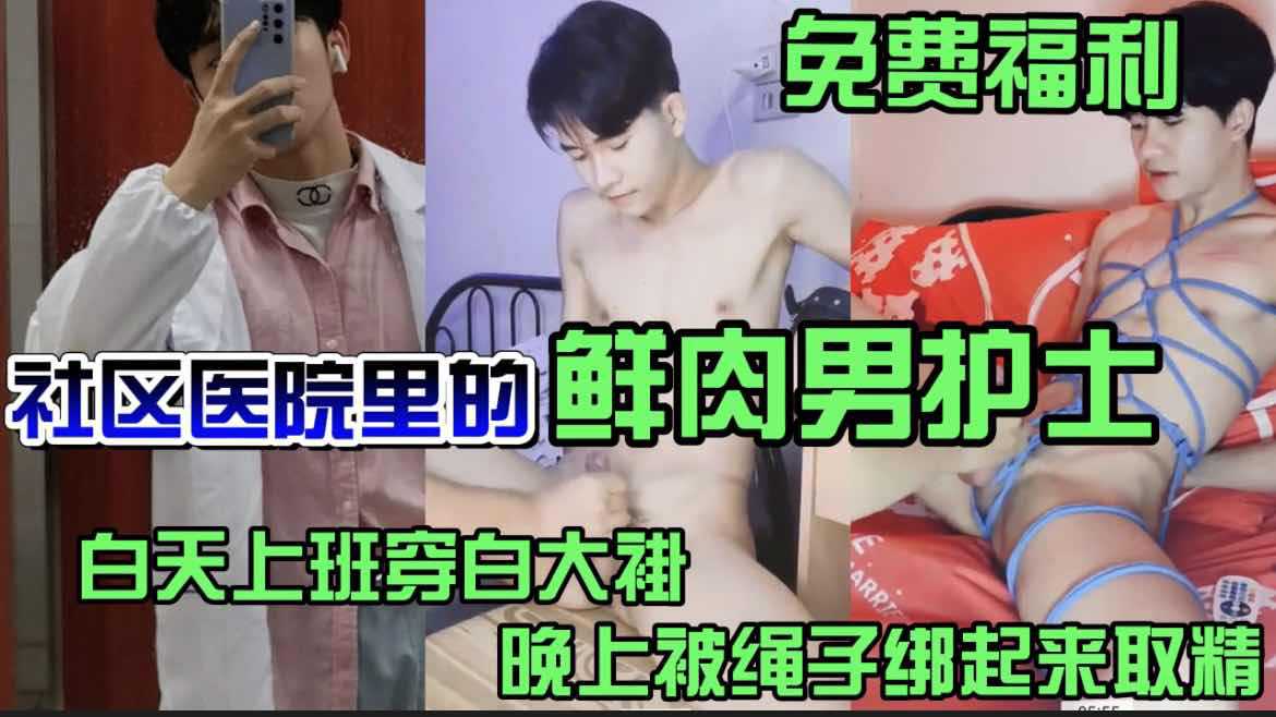 社区医院里的鲜肉男护士 白天上班穿制服白大褂 晚上被绳子绑起来取精
