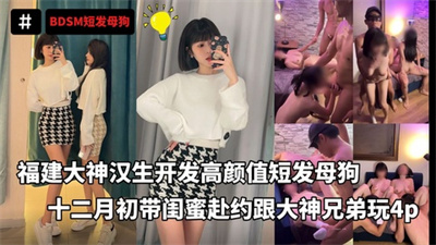 福建大神汉生开发高颜值短发母狗带闺蜜赴约跟大神兄弟玩4p