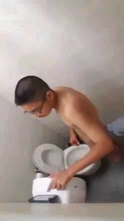 18岁正太商场厕所脱光打飞机