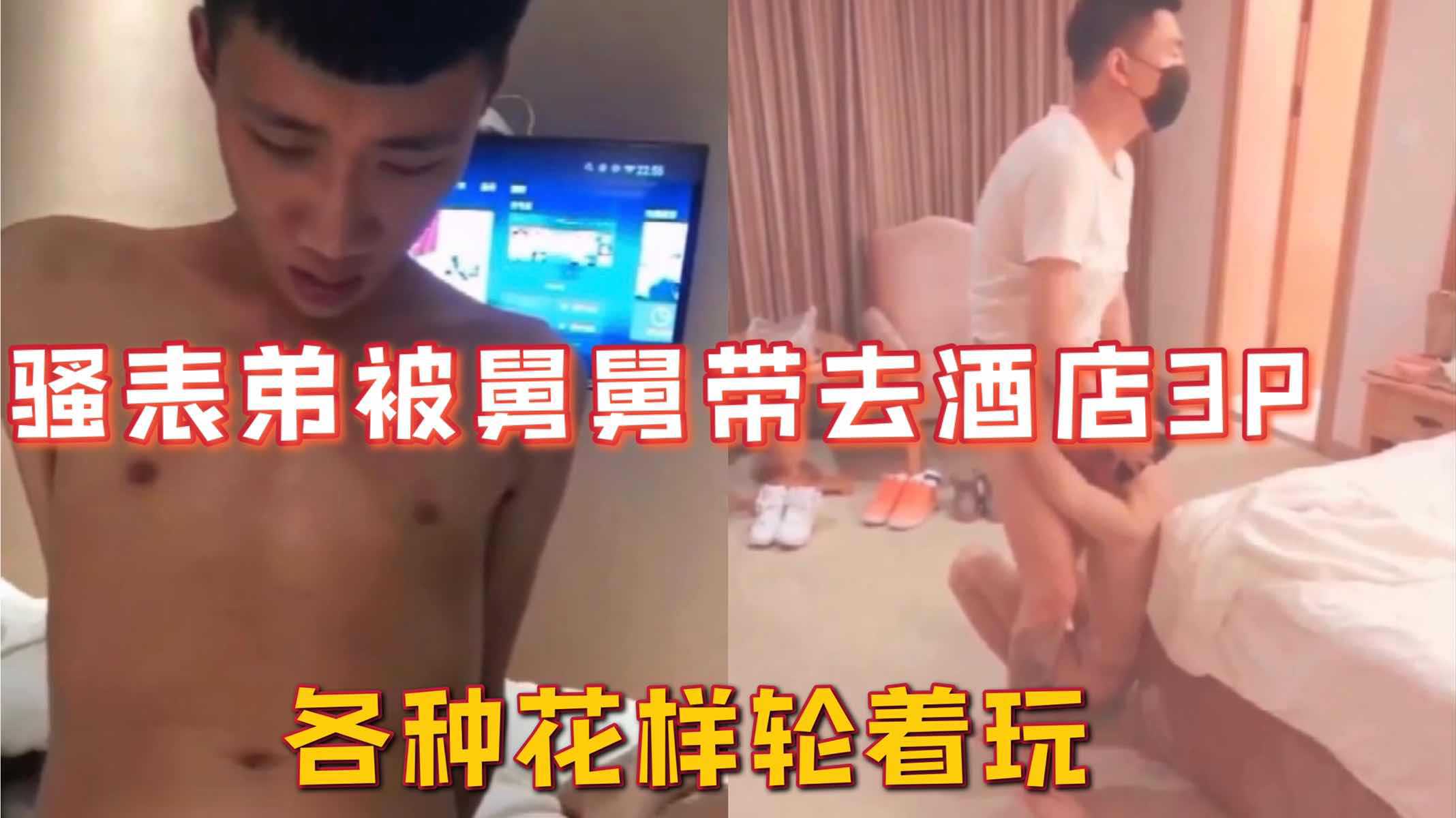 骚表弟被舅舅带去酒店3P,各种花样轮着玩一遍