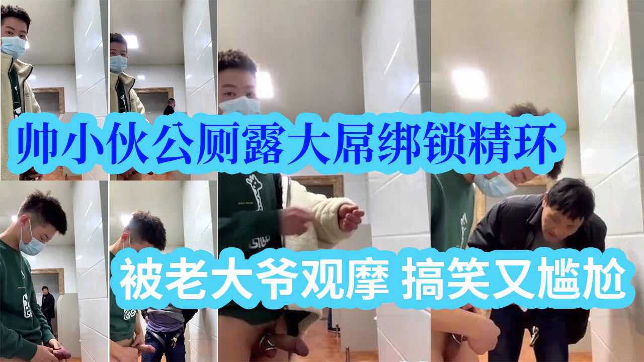 帅小伙公厕露大屌绑锁精环 被老大爷观摩 搞笑又尴尬