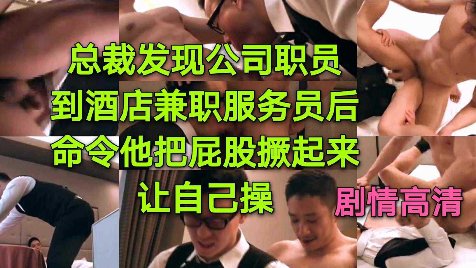 剧情 总裁发现公司职员到酒店兼职服务员后 命令他把屁股翘起来 让自己操