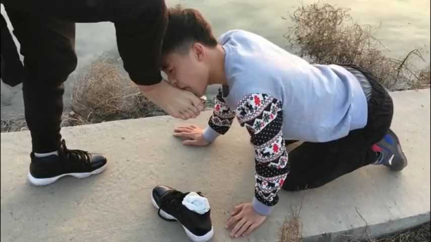 小鲜肉跪着舔脚再深喉口交,主人射他满嘴浓精,他一口都不剩全吞下去