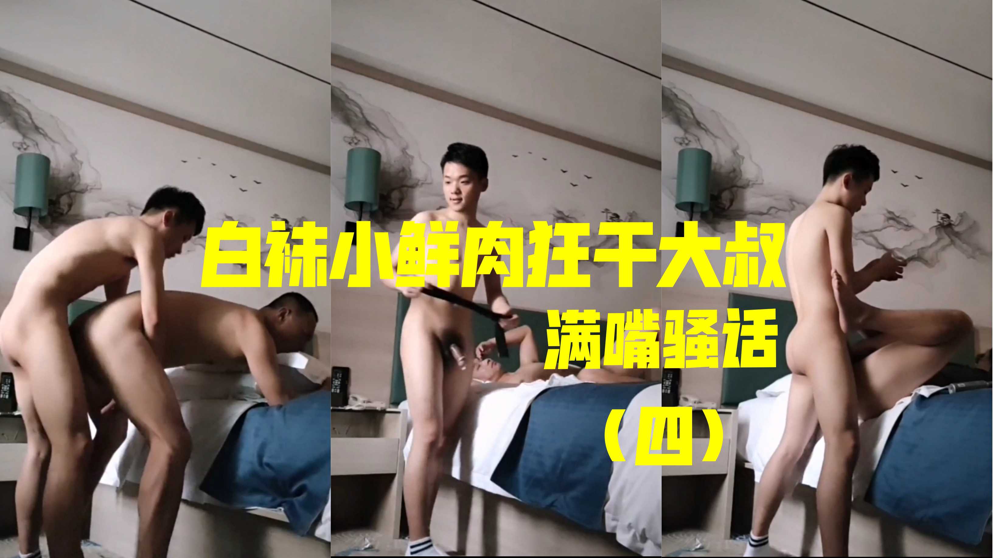 3/3满嘴骚话鲜肉穿着白内裤无套猛插大叔!