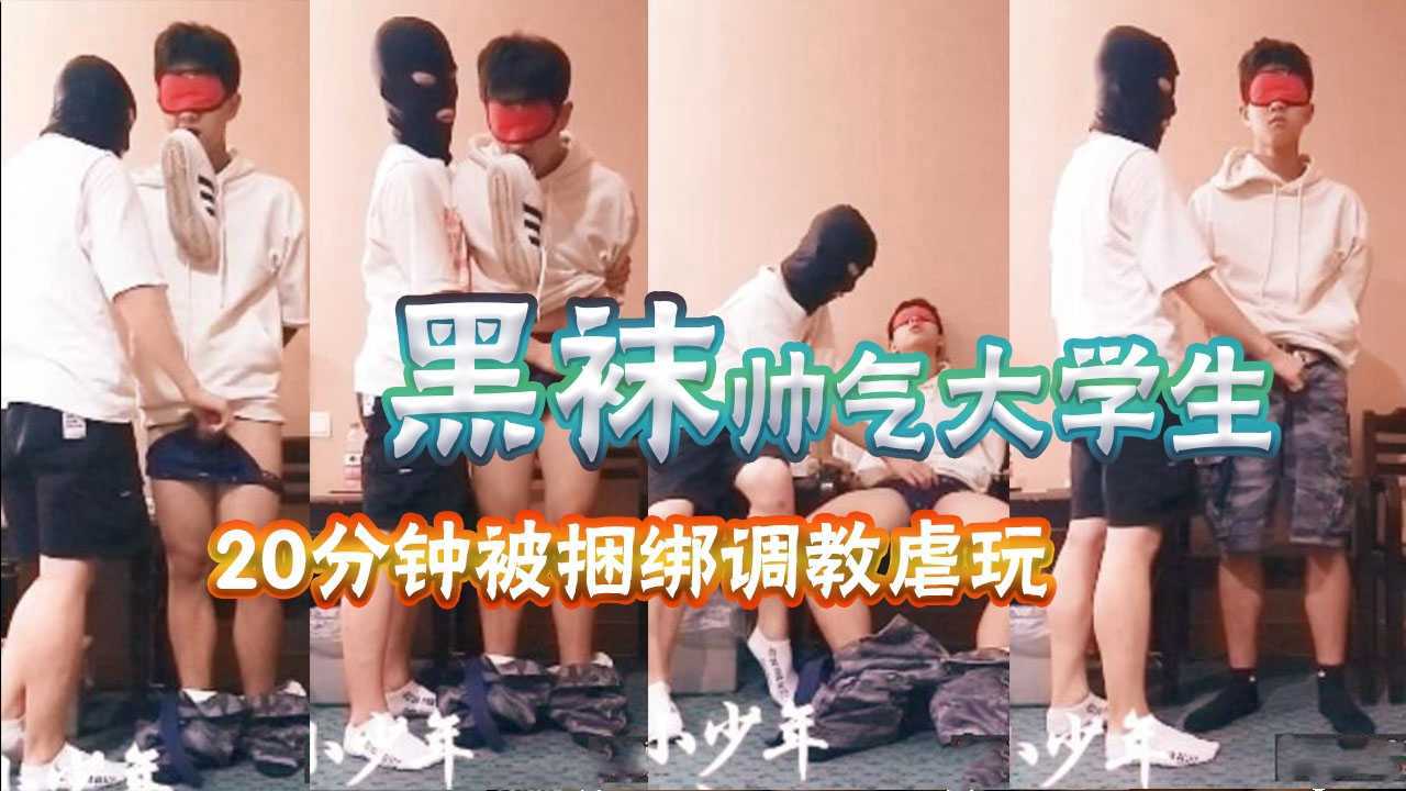 黑袜帅气大学生为赚钱被金主捆绑调教,虐玩20分钟控射爽玩