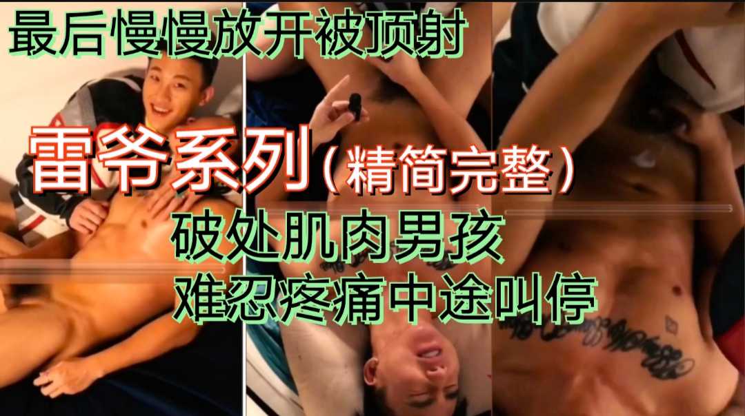 雷爷给肌肉男孩破处,初次难忍疼痛叫停,最后男孩慢慢释放自己被顶射