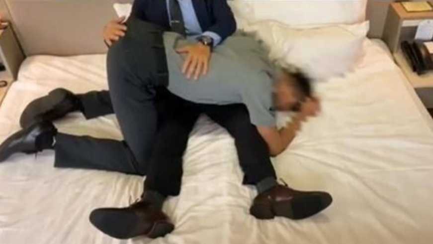 西装男职员被老板潜规则,进入老板开好的房间服侍西装总裁!上集
