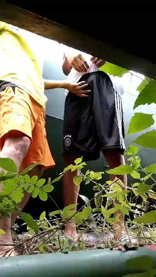 两帅气小伙在草丛互玩