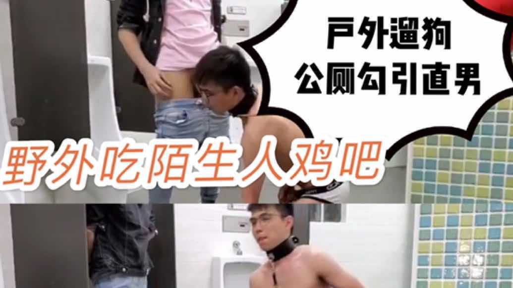 户外遛狗玩到公厕,直接勾引路过的直男,野外跪着吃陌生人大鸡巴超刺激
