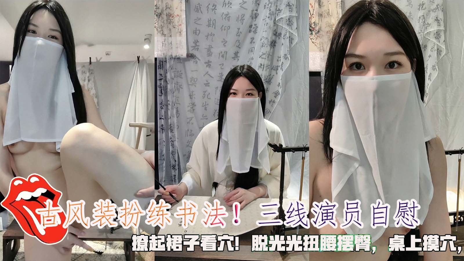 古风装扮练书法!三线演员自慰撩起裙子看穴!脱光光扭腰摆臀桌上摸穴跳蛋震动棒轮番上
