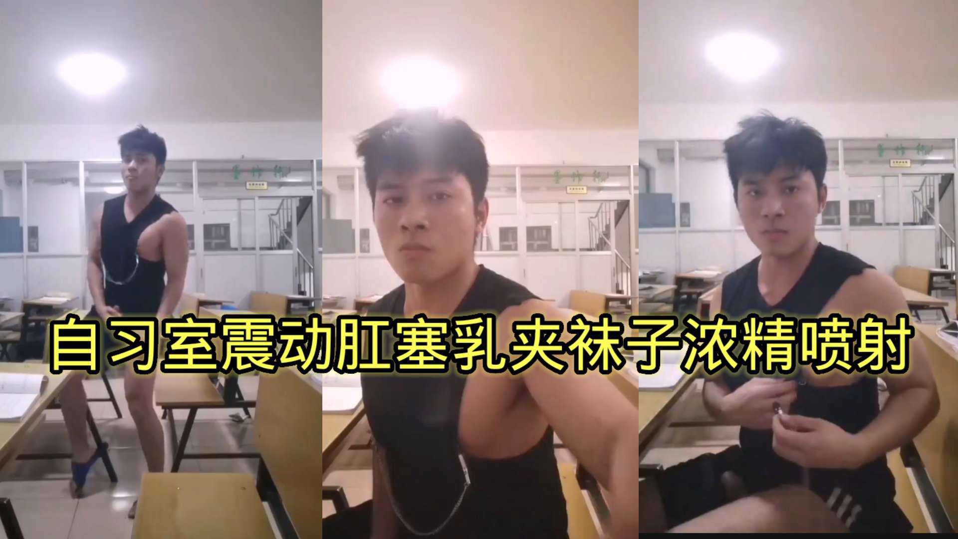 体育生自习室震动肛塞乳夹袜子浓精喷射