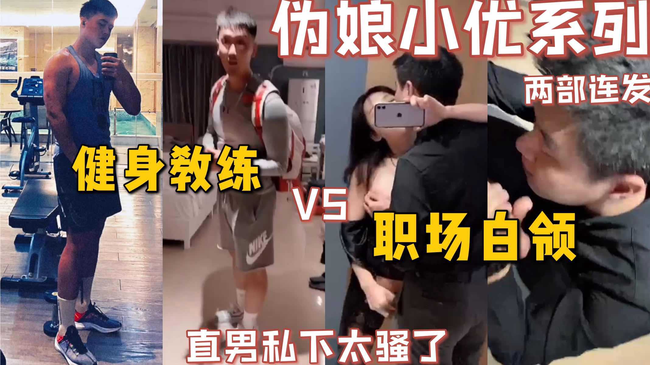 伪娘小优系列两部连发,伪娘约战健身教练与职场白领,直男私下真的太骚了,伪娘露屌操,还帮伪娘口屌